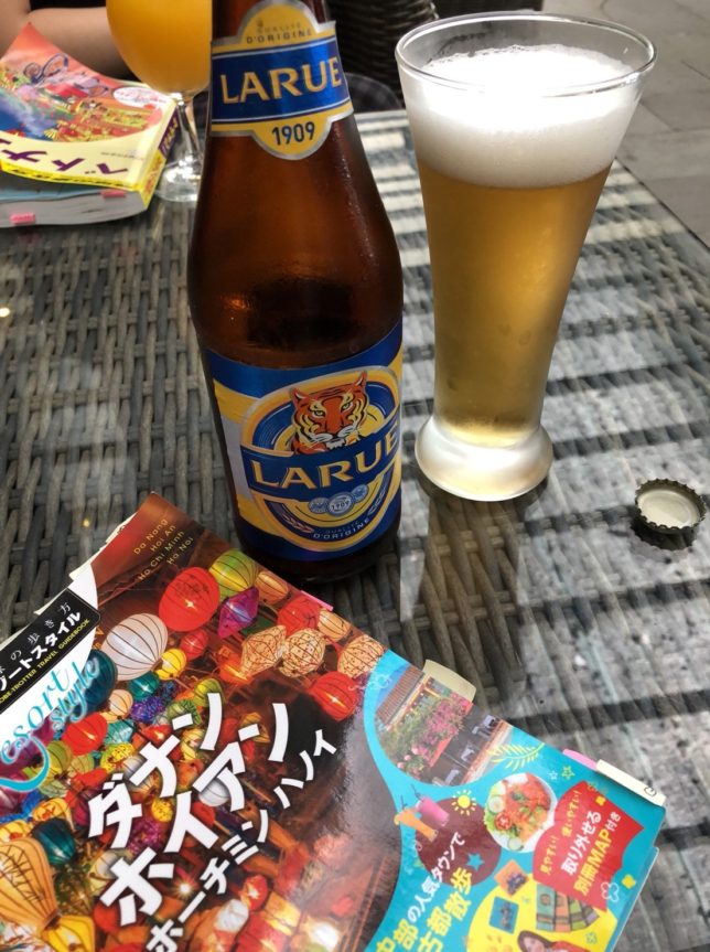 旦那が注文したのは、ローカルビールのLARUEとホイアン名物のホワイトローズ。