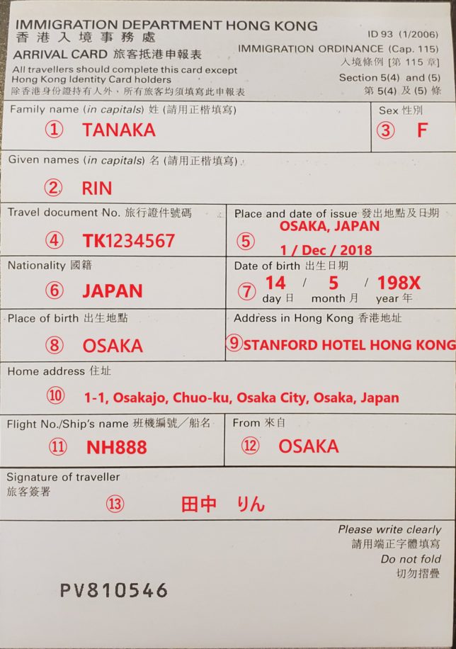 入国カードの書き方