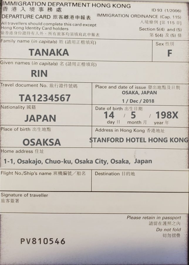 出国カードの書き方