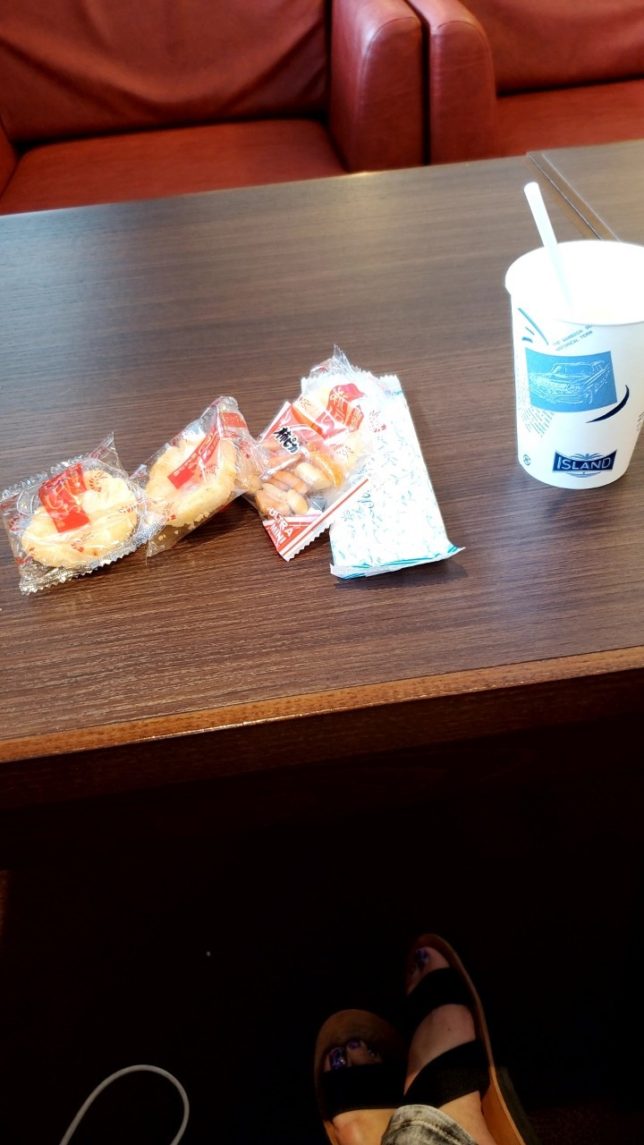 離陸後、しばらくしてお菓子が配られました。