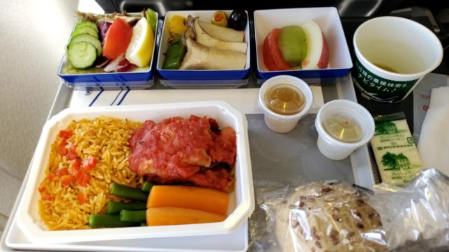 おやつを食べ終わるとすぐに機内食でした。