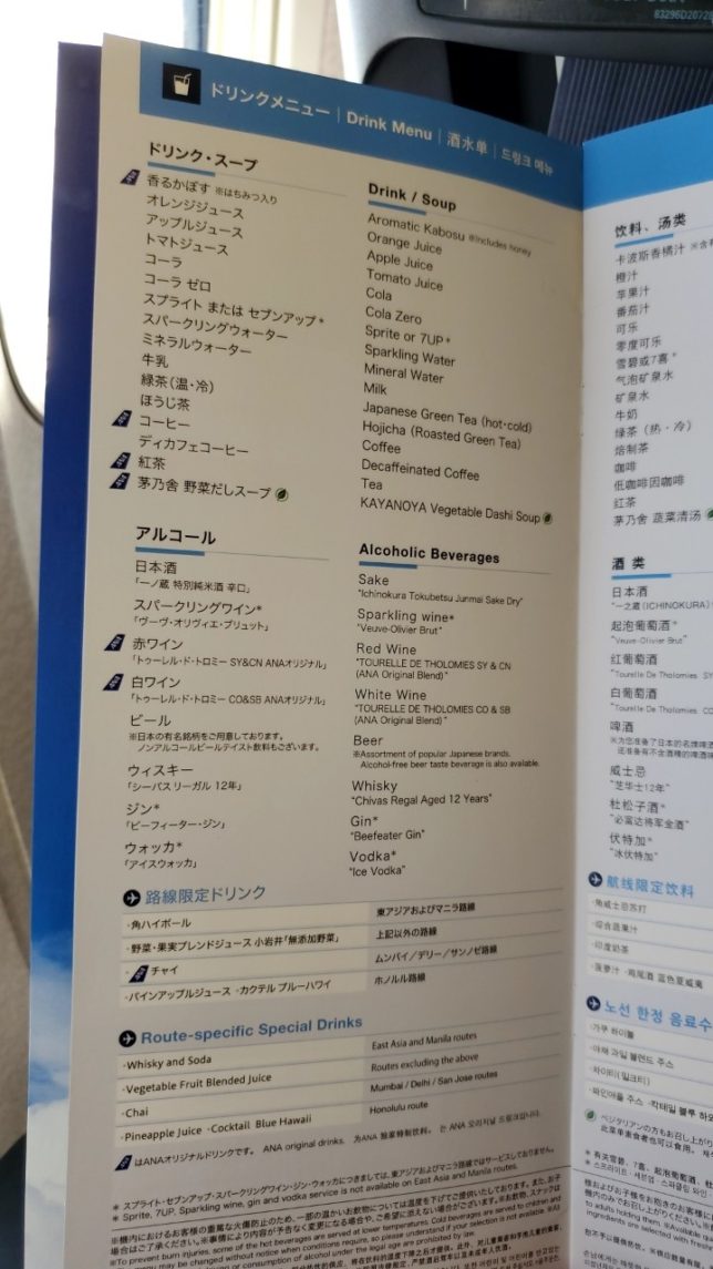 機内のドリンクメニューはこちら。