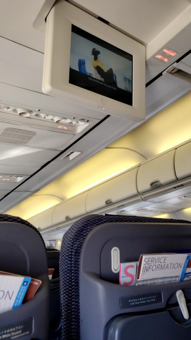 ・飛行機は小さく、専用モニターは無い
