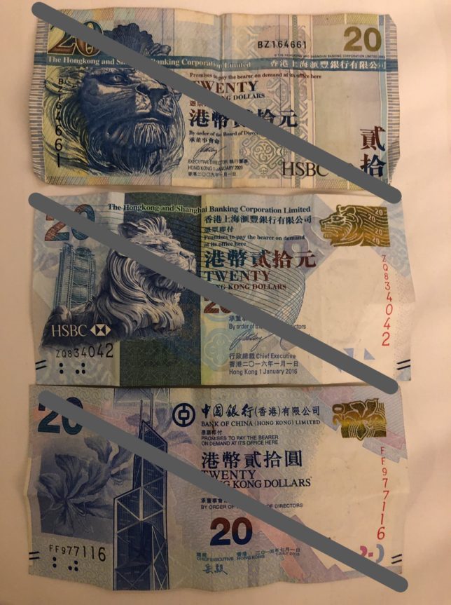 HK$の紙幣は3つの銀行から発行されています。