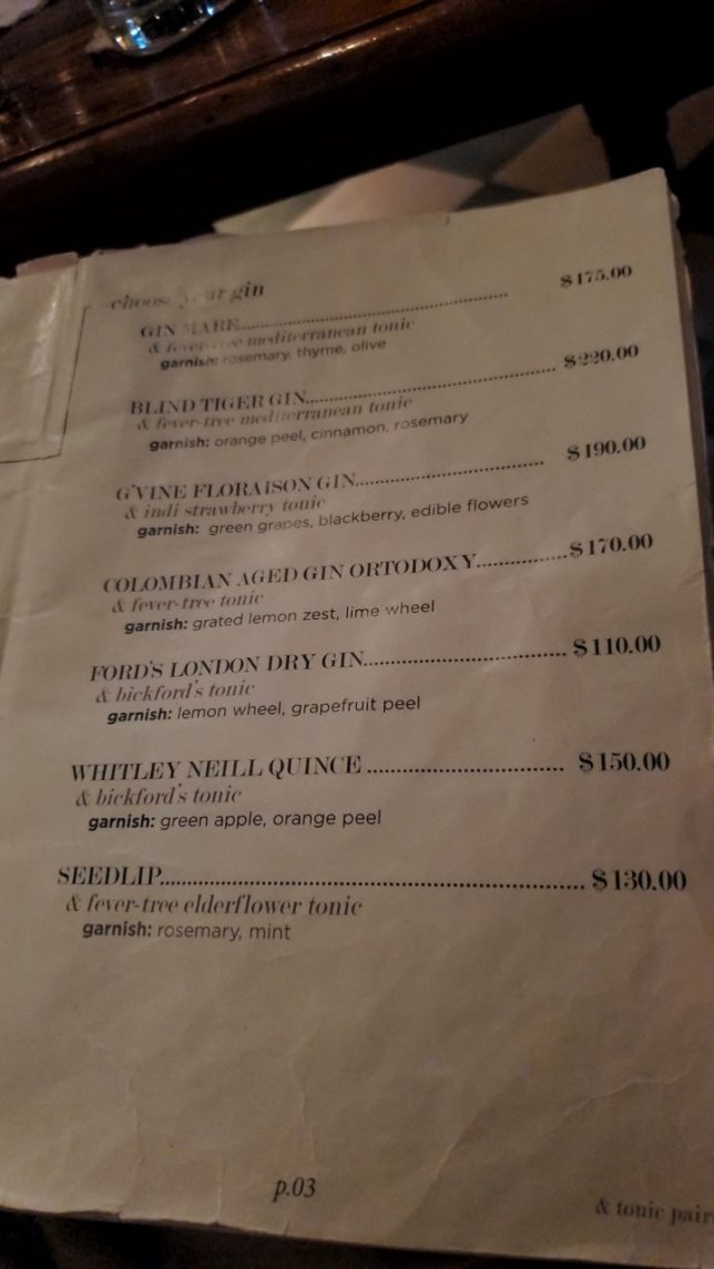 Whitney Neill Quince & Bickford’s tonic HK$150(約2250円)