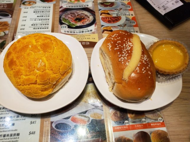 左からパイナップルパン、カクテルパン、エッグタルト
